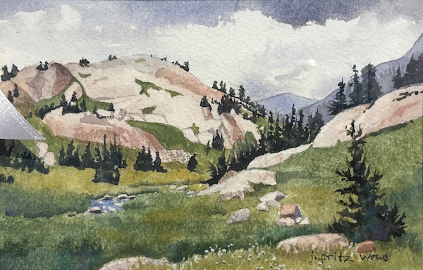 Laura Speer, Magdalena’s Back Yard, Watercolor, $100