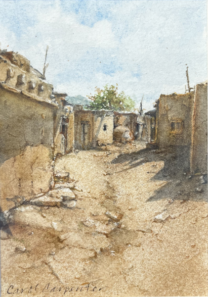 Carol Carpenter, Taos Pueblo, Watercolor, $400
